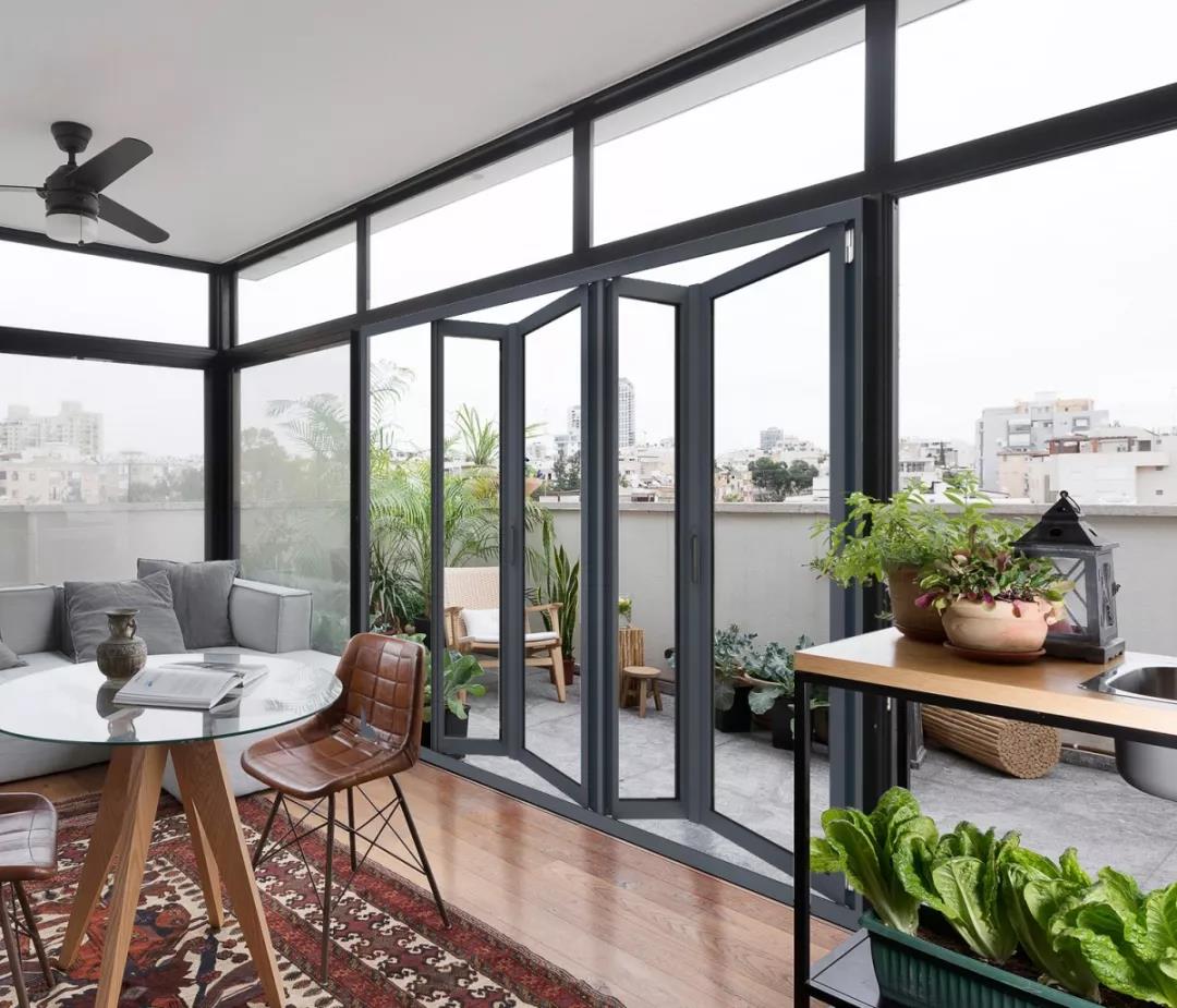 折叠门技术相比前些年已经有了较大突破,无论是密封性或是耐久性都能满足使用要求,折叠门可开可合,打开可以尽情享受室外的阳光,关闭可以隔开噪音,还能保持室内的私密性。
