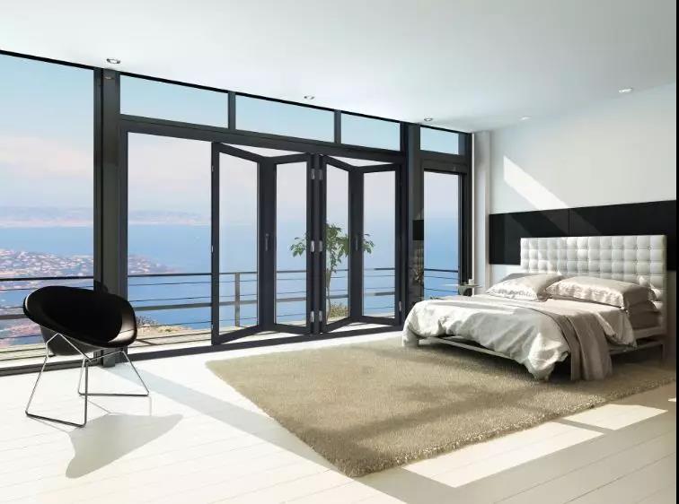 折叠门可以多扇折叠推到一侧,比较不占空间,看风景时也不会只看到半边,而且还能在视觉上扩大空间。