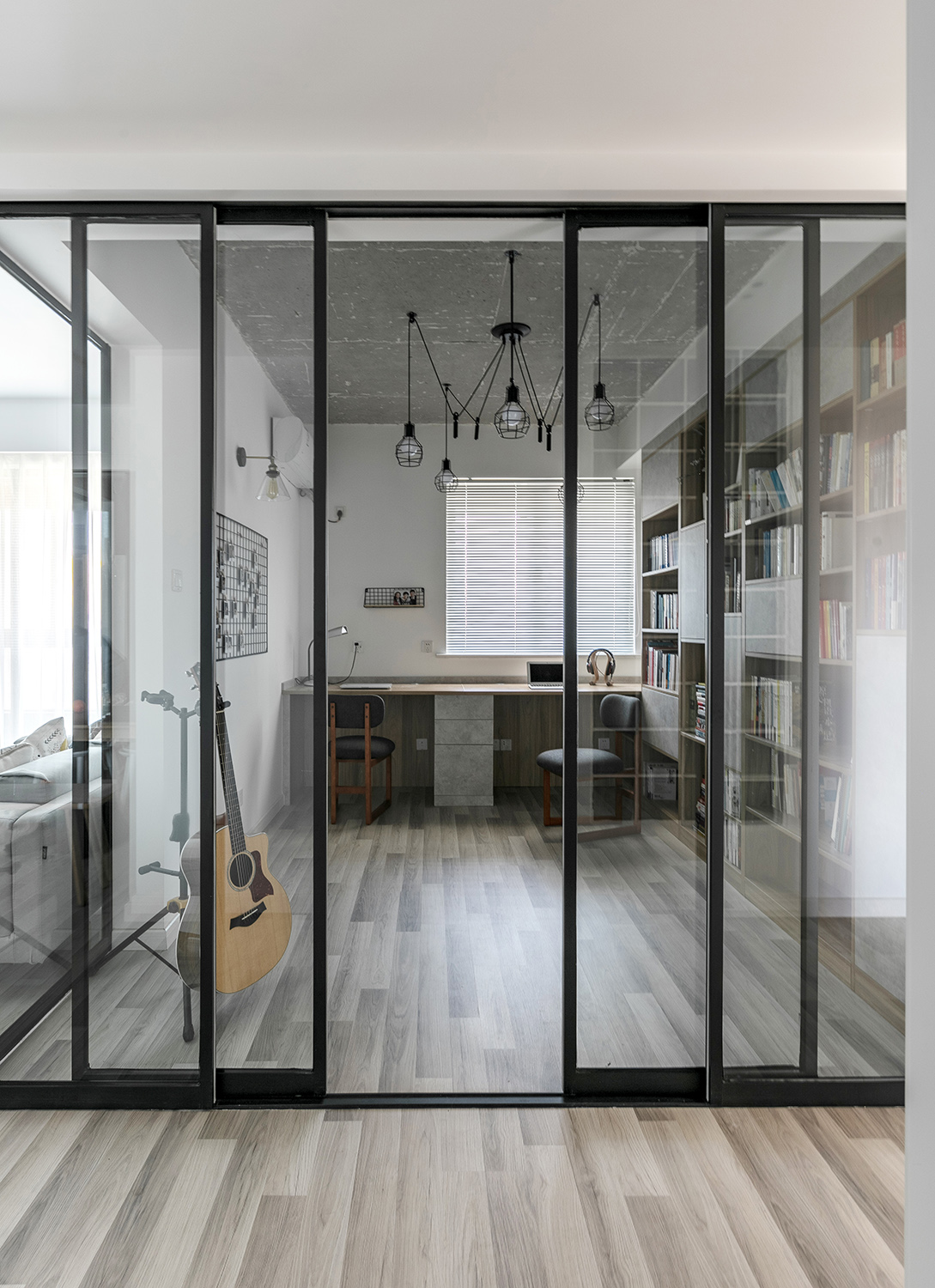 如果是非承重墙,可以砸掉,改用玻璃墙等来让光线畅通无阻:比如书房与走廊、厨房与餐厅之间,甚至卧室与走廊用玻璃+窗帘来改善采光。